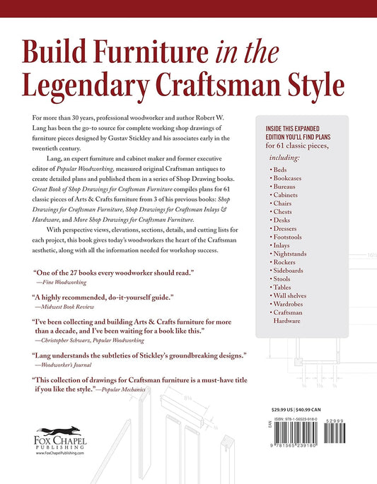 Great Book of Shop Drawings for Craftsman Furniture: Authentic and Fully Detailed Plans for 61 Classic Pieces (2ND ed.) by Robert W Lang