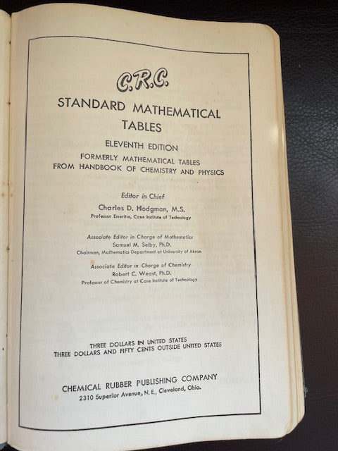 CRC Standard Mathematical Tables By Clarence W. Hodgman, Charles D., M.S. (Editor in Chief), Robert C. Weast, Phd., 11th edition