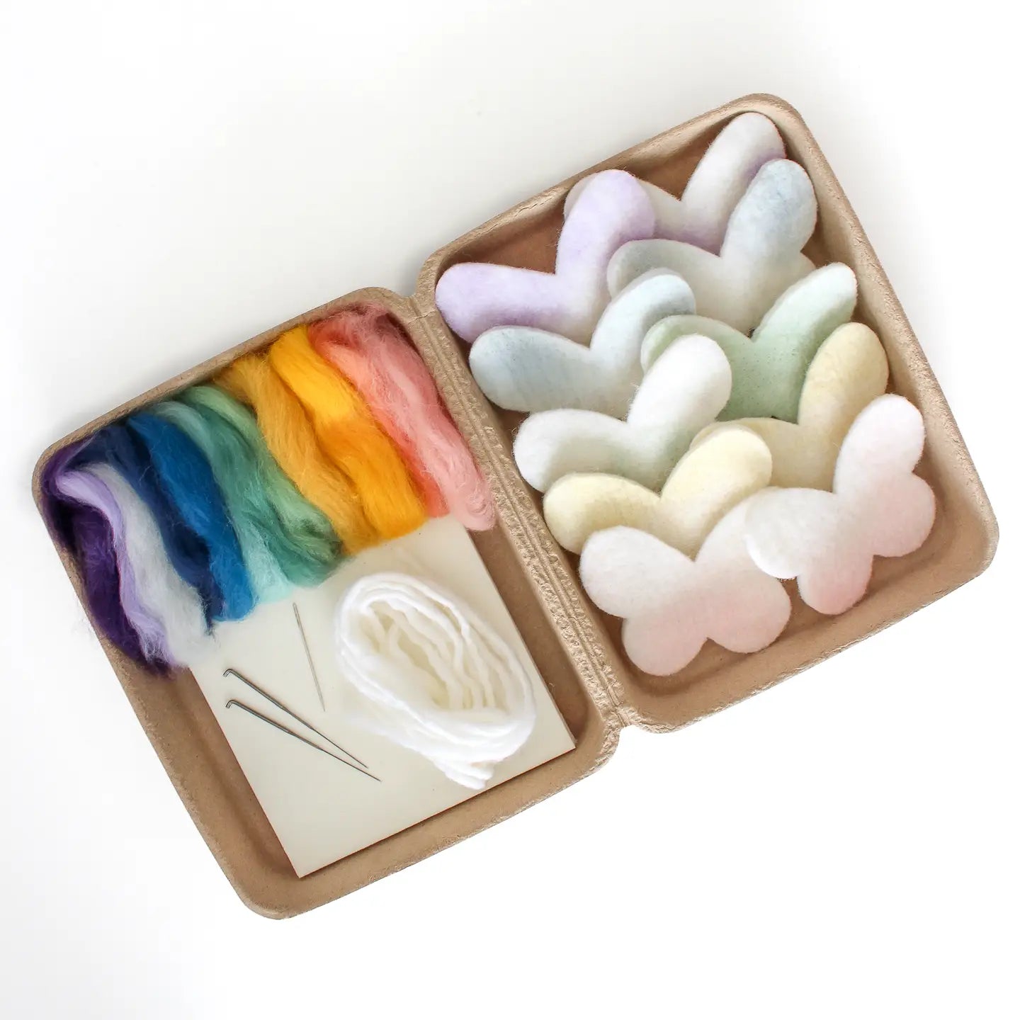 A high quality, approachable Needle Felting Craft Kit that invites beginners & beyond to experience the joy of felting wool. Following simple instructions, crafters add colorful details to their butterflies. They will find enjoyment beyond honing the craft itself, as they can string the finished butterflies together to make a pretty garland or use as individual ornaments for Spring decorating, birthday backdrops, and more. A perfect Birthday/Easter gift, craft for families, team building sessions, and parties.