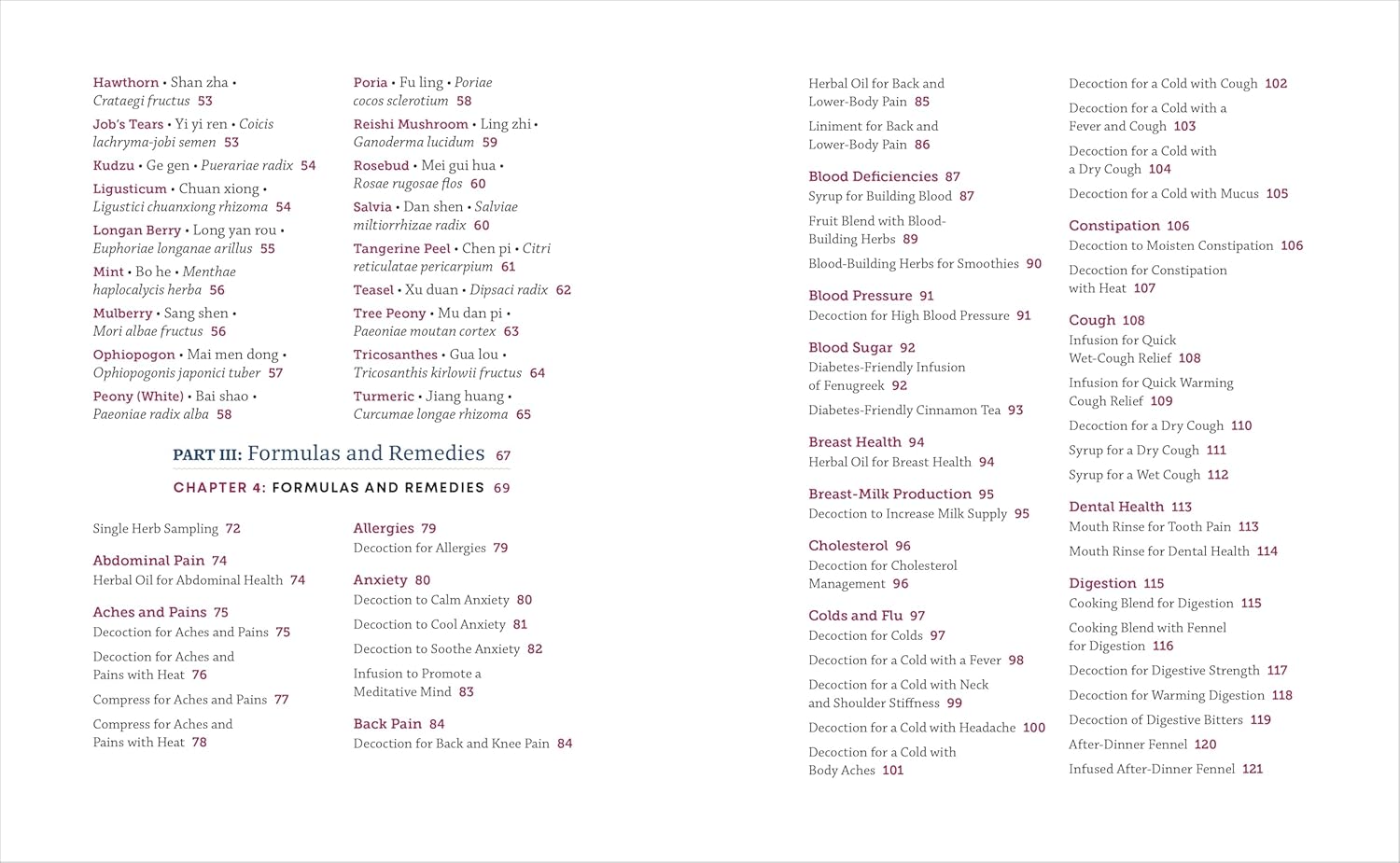 - Holistic harmony--Fortify your health with 100+ formulas and remedies for a diverse range of disharmonies, like blood deficiencies, back pain, anxiety, diabetes, colds and flus, insomnia, and more!