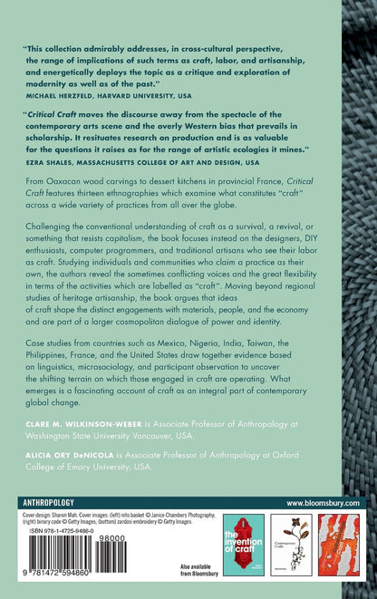 "Critical Craft is an effective contribution to the anthropology of craft, of work, and of 'thing' or objects. It clearly demonstrates that there is more to crafts of all sorts than 'tradition, ' expertise, and 'authenticity.' Anthropologists and others must be wary of assumptions about who does what kind of work or possesses what kind of knowledge, and we must be, like the authors of these quality essays, aware of the (unequal) agency of individuals and groups as they struggle within the field of any particular craft industry. - Anthropology Review Database - Jack David Eller
