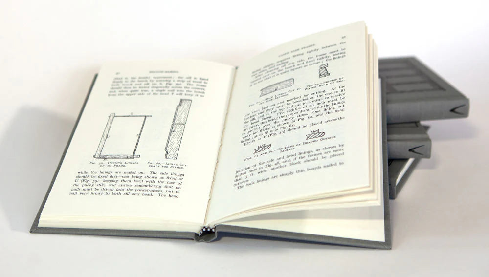 During the last 100 years, most of these booklets disappeared. Booklets don’t survive as well as books. And so we were thrilled when we were approached by joiner Richard Arnold in England, who presented us with a copy of each booklet to scan and reproduce for a book.