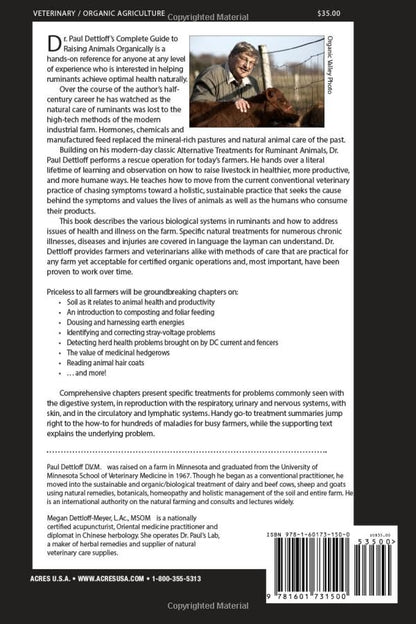 Building on his modern-day classic Alternative Treatments for Ruminant Animals, Dr. Paul Dettloff performs a rescue operation for today’s farmers. He hands over a literal lifetime of learning and observation on how to raise livestock in healthier, more productive, and more humane ways. He teaches how to move from the current conventional veterinary practice of chasing symptoms toward a holistic, sustainable practice that seeks the cause behind the symptoms and values the lives of animals as well as the humans who consume their products.