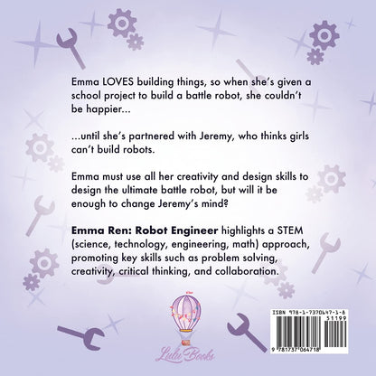 Emma Ren: Robot Engineer story will inspire young readers especially young girls to follow their passion and encourage them to be thinkers, problem solvers, doers, innovators, and inventors. Emma Ren loves building things and is excited to build a battle robot for her class competition, however, her partner Jeremy thinks that girls are not as good at building things. Follow Emma Ren's passion for robot building and her perseverance to create the best battle robot.