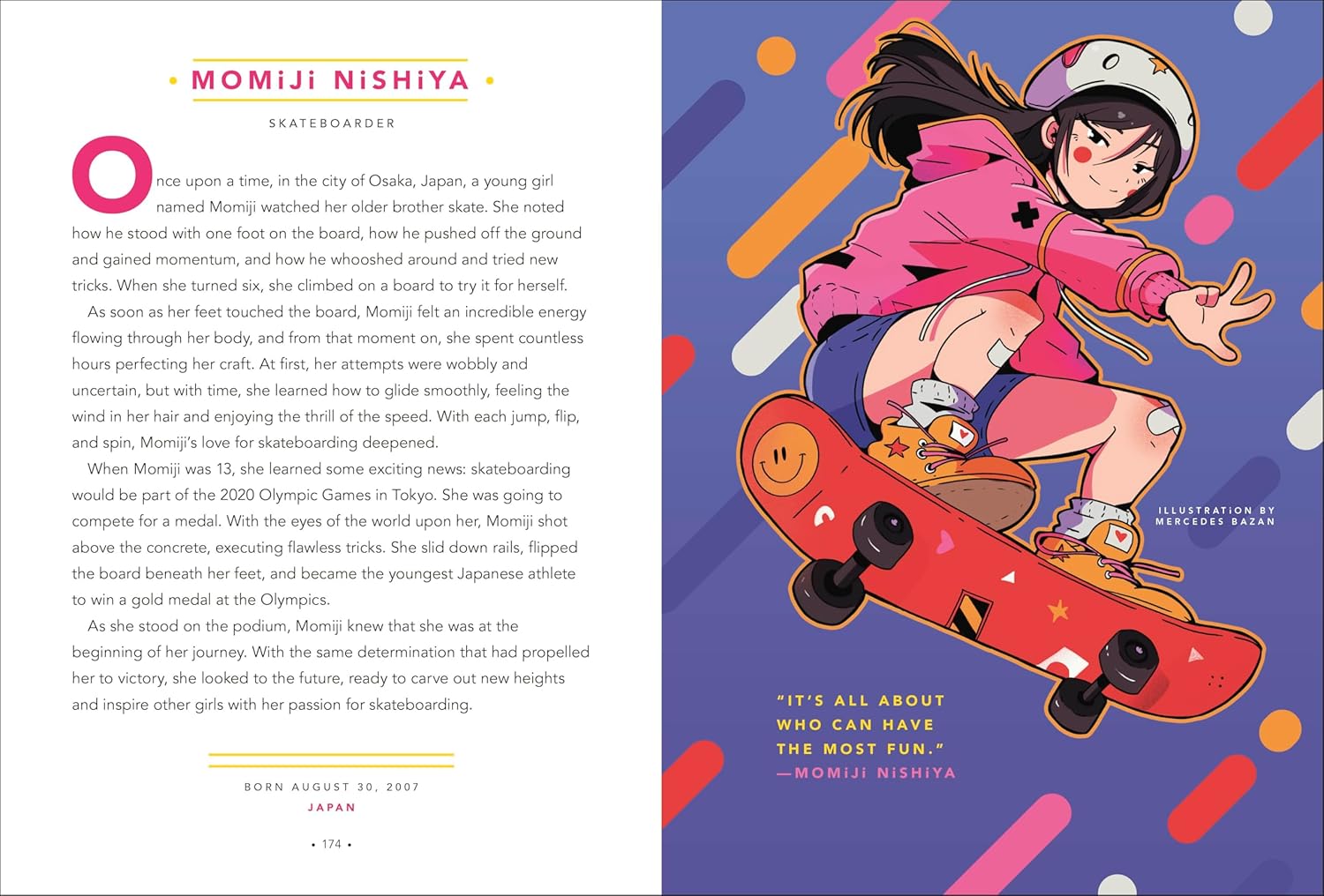 Readers will marvel at the accomplishments of well-known women like Cleopatra, Amelia Earhart, Rosa Parks, Ruth Bader Ginsburg, and Frida Kahlo, and they'll discover the powerful stories of Colombian spy Policarpa Salavarrieta, Afghani rapper Sonita Alizadeh, Sierra-Leonean ballerina Michaela dePrince, Mexican doctor Matilde Montoya, and American surgeon Mary Edwards Walker.