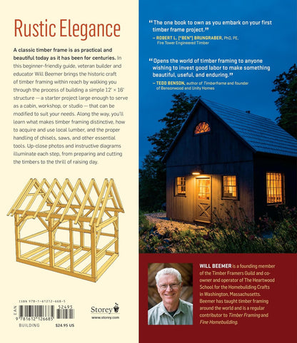 A classic timber frame is as practical and beautiful today as it has been for centuries. In this beginner-friendly guide, veteran builder Will Beemer brings the historic craft of timber framing within reach by walking you through the process of building a simple 12x16 structure — a starter project large enough to serve as a cabin, workshop, or studio — that can be modified to suit your needs. Along the way, you'll learn what makes timber framing distinctive, how to acquire and use local lumber, and the proper handling of chisels, saws, and other essential tools. Inspiring photos and instructive diagrams illuminate each step from preparing and cutting the timbers to the thrill of raising day.