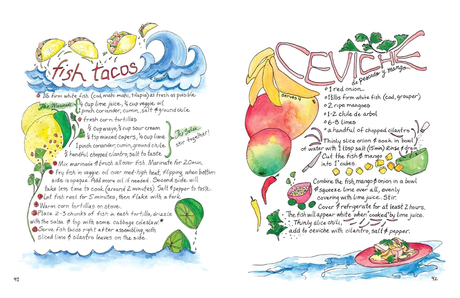 Discovered as a successful self-published Kickstarter project, Mi Comida Latina captures the warmth and depth of culinary traditions in Mexico, Peru, Ecuador, Colombia and Puerto Rico. Artist/author Marcella Kriebel's vivid, charming watercolors accompany more than 100 recipes including arepas, tamales, ceviches, fish tacos, salsas, flan, spicy micheladas and icy watermelon paletas, plus traditional kitchen tools, techniques and practical tips for choosing and preparing mango, cactus, yucca, coconut and other produce. Every page is a joyous work of art.
