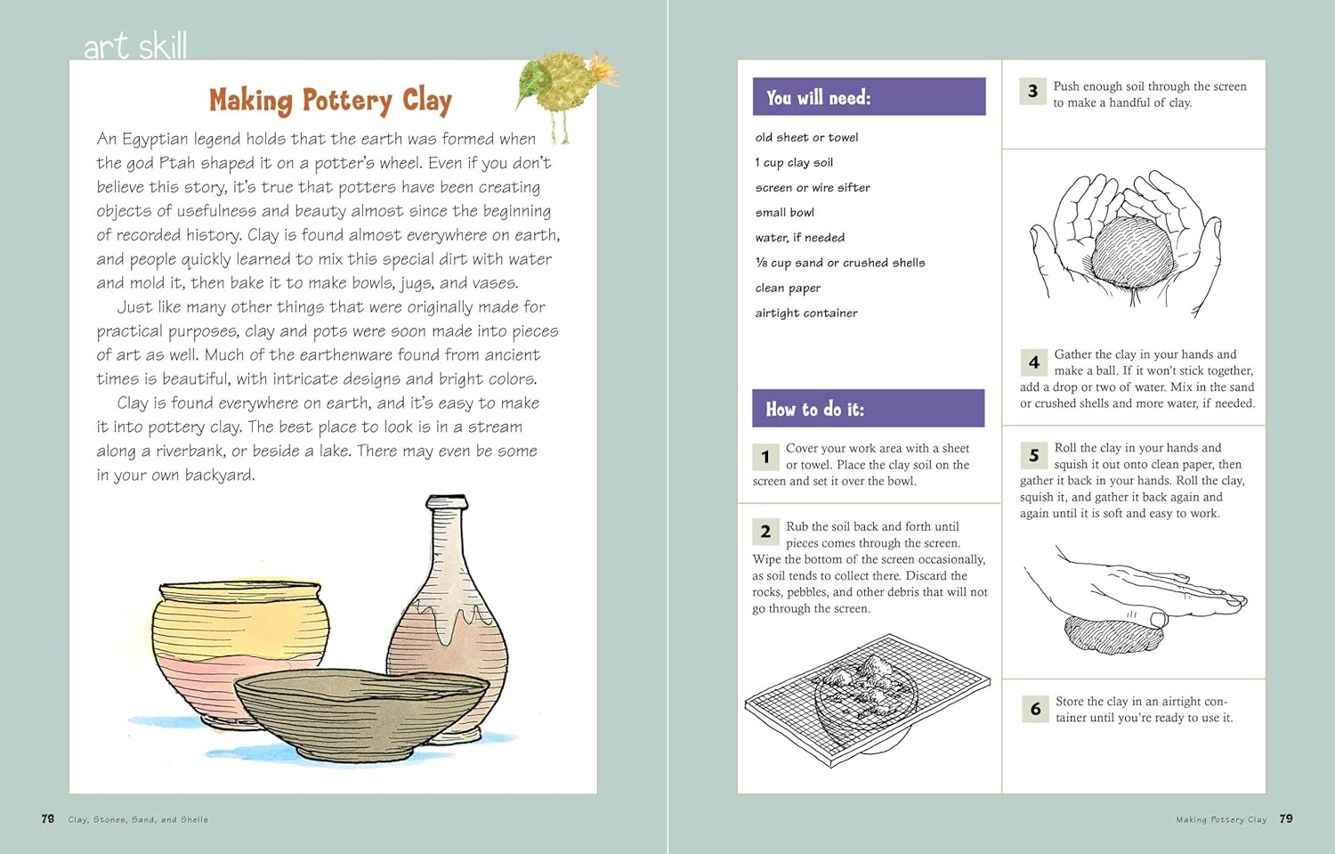 While Martin teaches kids to see the possibilities of the natural world, she also teaches them to respect what the earth offers. She warns them against stripping bark off live trees, plucking every flower in the field, and clearing the ground of every nut and seed. NATURE'S ART BOX helps kids learn to be good artists and conscientious stewards of nature's resources.