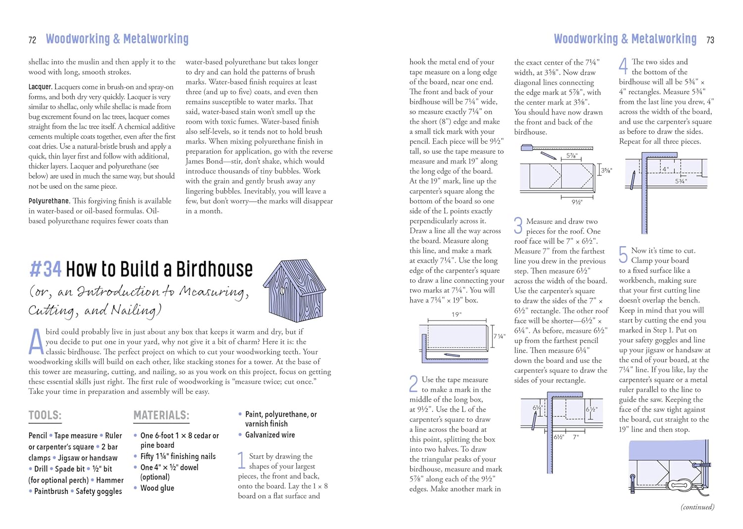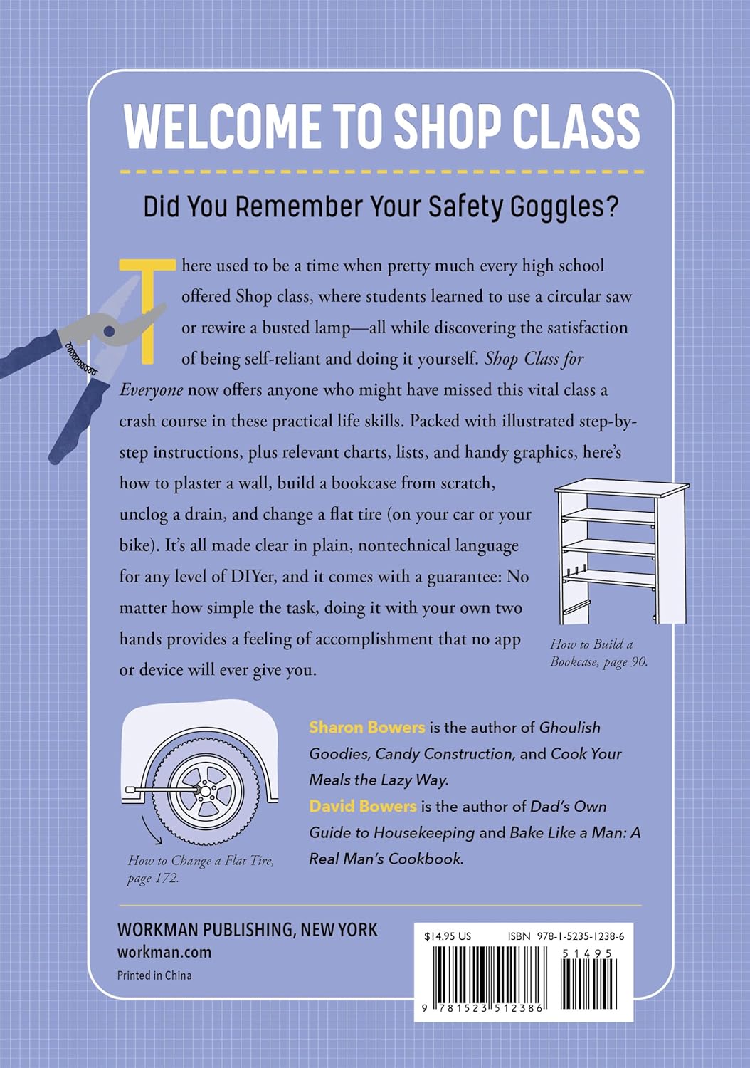 There used to be a time when pretty much every high school offered Shop class, where students learned to use a circular saw or rewire a busted lamp- all while discovering the satisfaction of being self-reliant and doing it yourself. Shop Class for Everyone now offers anyone who might have missed this vital class a crash course in these practical life skills. Packed with illustrated step by step instructions, plus relevant charts, lists, and handy graphics, here's how to plaster a wall, build a bookcase from scratch, unclog a drain, and change a flat tire (on your car or bike). It's all made clear in plain, nontechnical language for any level of DIYer, and it comes with a guarantee: No matter how simple the task, doing it with your own two hands provides a feeling of accomplishment that no app or device will ever give you.