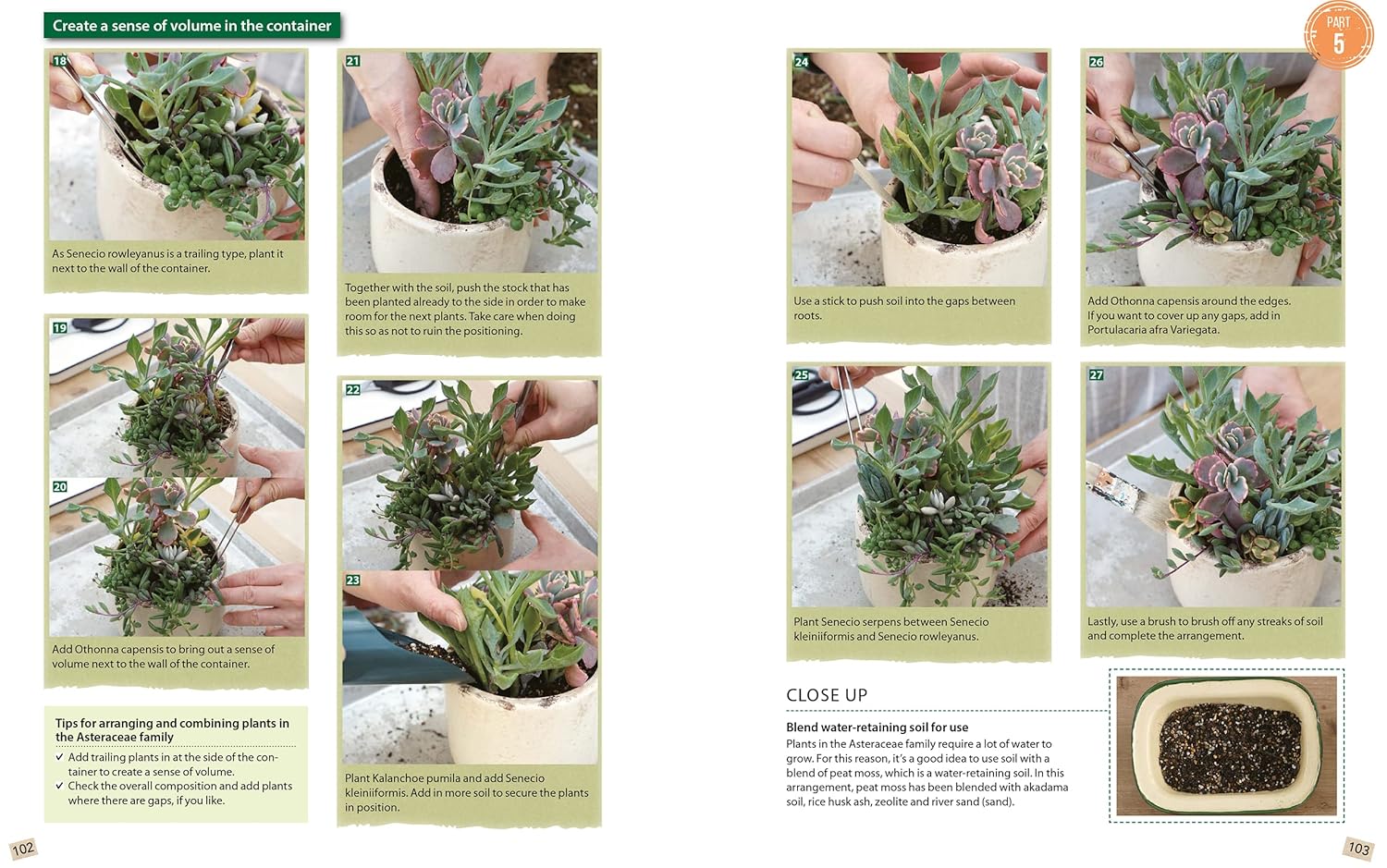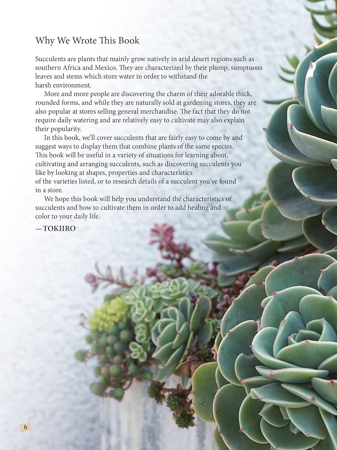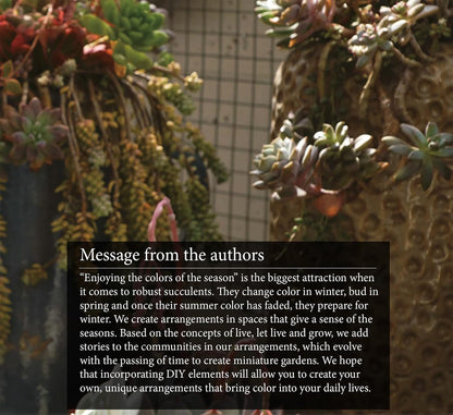 Succulent specialists Tokiiro (Yoshinobu Kondo) explains how the plants' appearances shift with the seasons, and give advice about how to combine them creatively to take full advantage of their seasonal changes in shapes and colors.