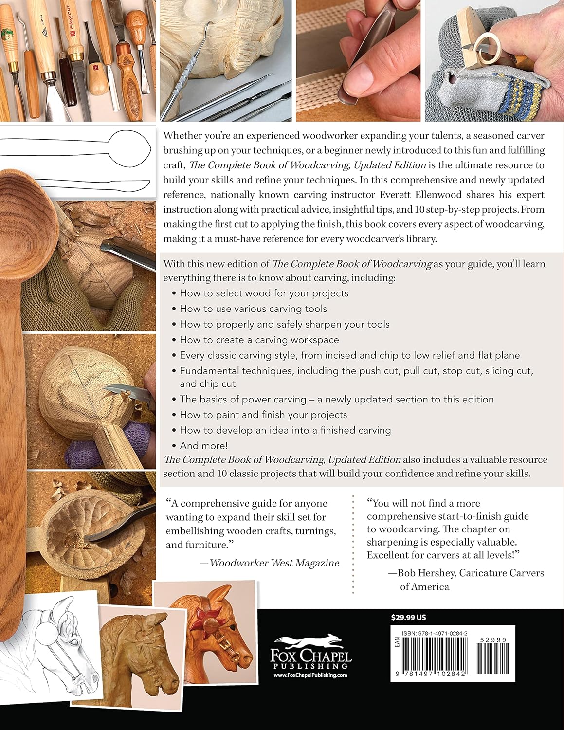 From making the first cut to applying the finish, this comprehensive resource covers every aspect of woodcarving. Everything is here for the beginning or advanced woodcarver, from choosing the appropriate wood; setting up a shop, selecting, using, and sharpening tools; and performing all the fundamental techniques, such as the push cut, pull cut, stop cut, and slicing cut. Every general carving style -- from classical to whimsical to rustic -- are detailed, as are the basic steps of power carving. The included 10 step-by-step projects are designed to help newer woodcarvers build proficiency. Best of all, a handy resource section and a glossary round out this fully illustrated, must-have resource for all woodcarvers. The new edition includes an updated power carving section, newly added step-by-step projects of a simple spoon and a Santa face along with patterns and painting tips, and updated photography.