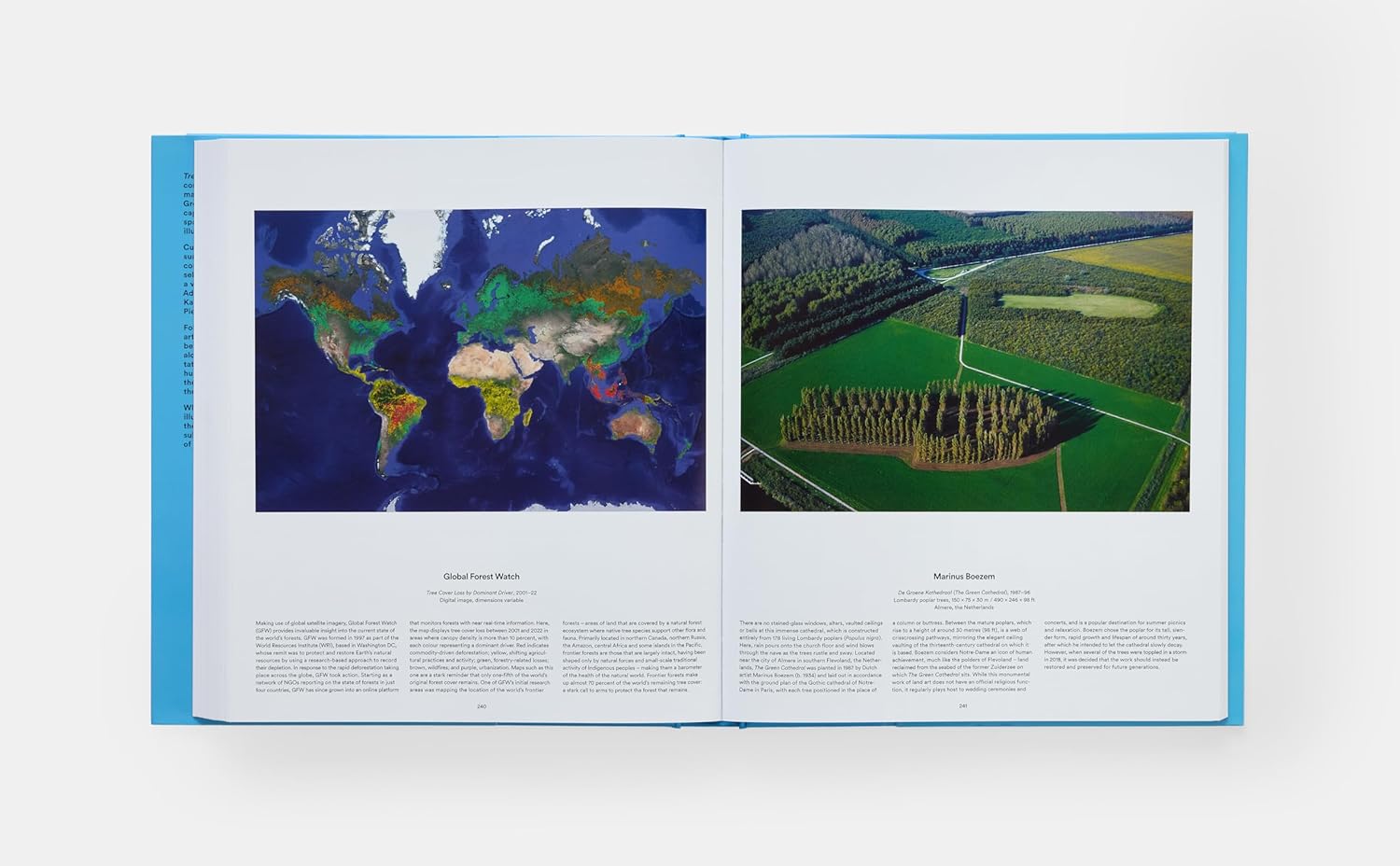 Featured artists and contributors include: Ansel Adams, Yann Arthus-Bertrand, Ruth Asawa, Paul Cézanne, Agnes Denes, Albrecht Dürer, Caspar David Friedrich; Global Forest Watch, Andy Goldsworthy, Ernst Haeckel, Utagawa Hiroshige, Frida Kahlo, Yayoi Kusama, Sally Mann, Grandma Moses, Marianne North, Pierre-Joseph Redouté, Daniel Roseberry for Schiaparelli, Antoine de Saint-Exupéry, Sebastião Salgado, and Yokohama Nursery Co., among others.