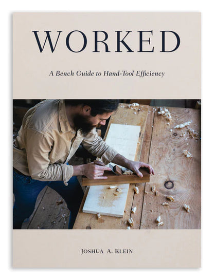 In Worked: A Bench Guide to Hand-Tool Efficiency, author Joshua A. Klein introduces us to the steps between the steps, demonstrating the mindset of the period woodworker as a project unfolds. He demonstrates the most efficient body postures to generate maximum power for ripping a board, how crosscutting with a sawbench utilizes the combined forces of the cutting sawteeth and body weight to firmly hold the lumber in place, and why sitting on your workpiece might be the best way to secure it. Eschewing locked-down, difficult-to-adjust workholding methods, Klein shows us how simple bench hooks, pegs, body weight, and human-powered vises like the shaving horse can be best utilized for speed and enjoyment.